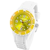 #1: Alienwork Chronos Montre quartz Résistant à leau 3ATM Silicone jaune blanc